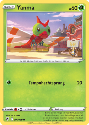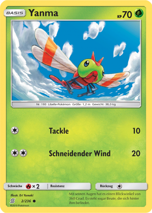| Alle Karten | Sehen Sie alle Yanma-Pokémonkarten in einer Übersicht. |