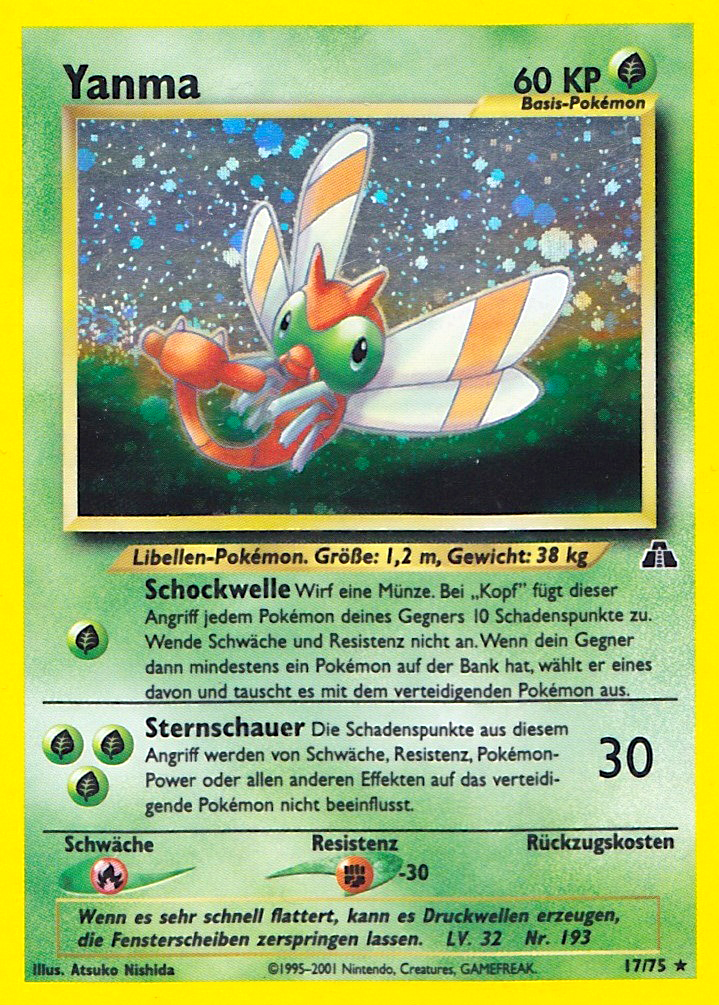 | Kaufen? | Kaufen Sie Ihre Yanma Pokemon-Karte aus dem Neo Entdeckung-Erweiterung. |