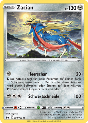 | Alle Karten | Sehen Sie alle Zacian-Pokémonkarten in einer Übersicht. |