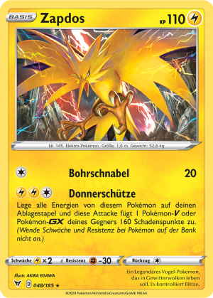 | Alle Karten | Sehen Sie alle Zapdos-Pokémonkarten in einer Übersicht. |