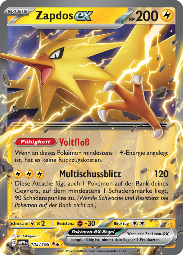 | Kaufen? | Kaufen Sie Ihre Zapdos-ex Pokemon-Karte aus dem Pokemon 151-Erweiterung. |