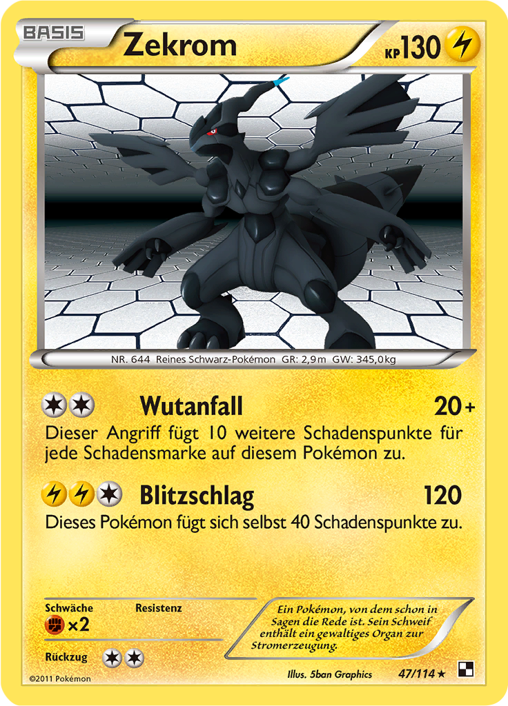 | Karten | Schwarz & Weiss besteht aus 115 Pokémon Karten. |
