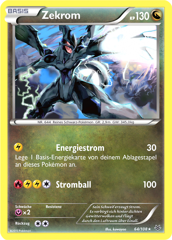 | Kaufen? | Kaufen Sie Ihre Zekrom Pokemon-Karte aus dem Drachenleuchten-Erweiterung. |