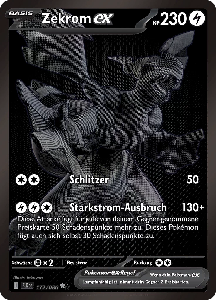 | Karten | Schwarze Blitze besteht aus 172 Pokémon Karten. |