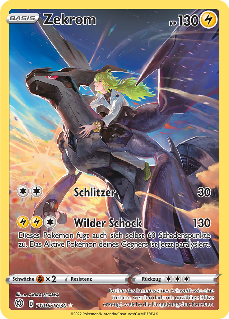 | Kaufen? | Kaufen Sie Ihre Zekrom Pokemon-Karte aus dem Strahlende Sterne - Trainergalerie-Erweiterung. |