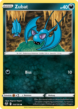 | Alle Karten | Sehen Sie alle Zubat-Pokémonkarten in einer Übersicht. |