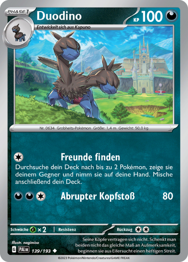 | Kaufen? | Kaufen Sie Ihre Duodino Pokemon-Karte aus dem Entwicklungen in Paldea-Erweiterung. |