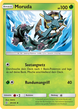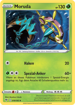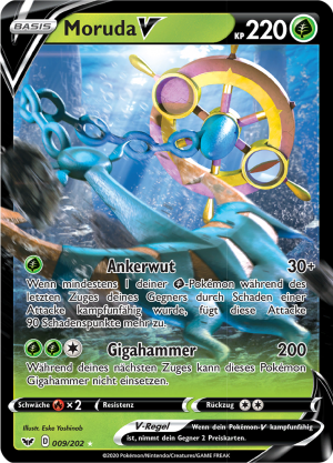 | Fließtext | Wenn es seinen riesigen Anker schwingt, kann es sogar ein Wailord mit einem Schlag K.O. hauen. Der grüne Seetang ist sein Körper. |