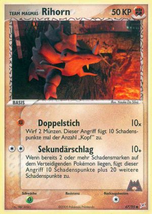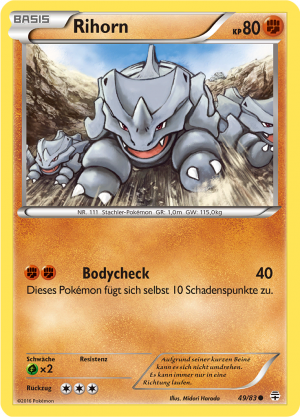 | Fließtext | Stark, aber nicht allzu klug, kann dieses Pokémon sogar Hochhäuser mit seinem Tackle-Angriff zum Einsturz bringen. |