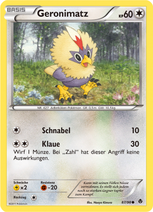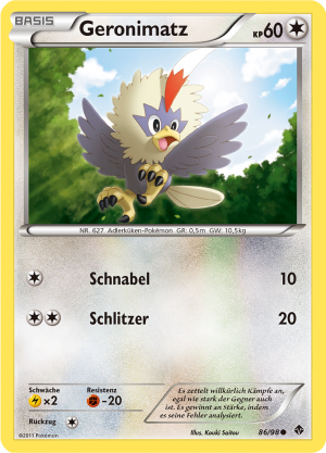 | Statuswerte | KP 70 Angriff 83 Verteidigung 50 Spezial‑Angriff 37 Spezial‑Verteidigung 50 Initiative 60 |