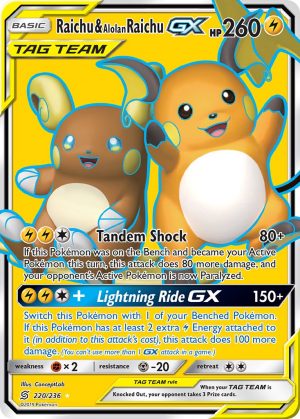 Bemerkenswerte Raichu-Karten sind Raichu Prime aus den Erweiterungen HeartGold & SoulSilver und die Alola-Raichu-Karte aus der Ära Sun & Moon. Raichu Prime ist besonders begehrt wegen seines Artworks und seiner starken Angriffe, während die Karte von Alola-Raichu ihre neue Typen-Kombination und Fähigkeiten widerspiegelt und so im Spiel eine interessante strategische Wahl darstellt.