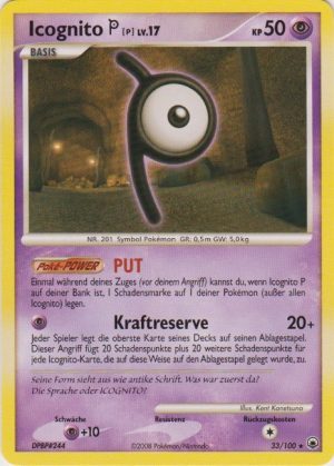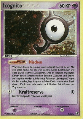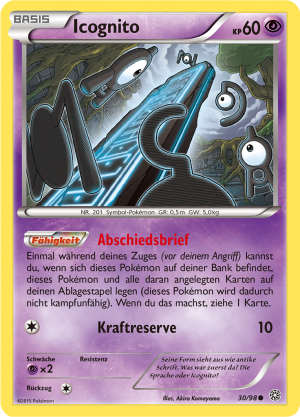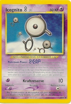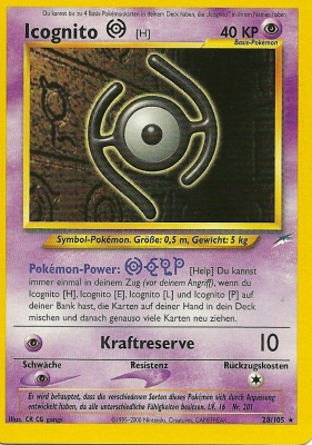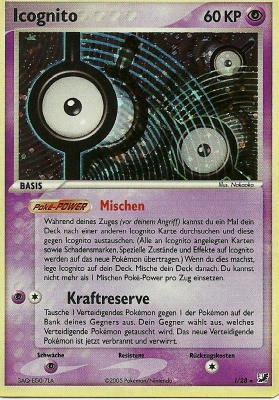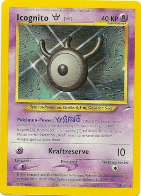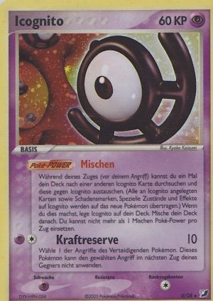 Suchst du nicht nach deutschen Icognito-Karten, sondern nach englischen Unown Pokémon-Karten?